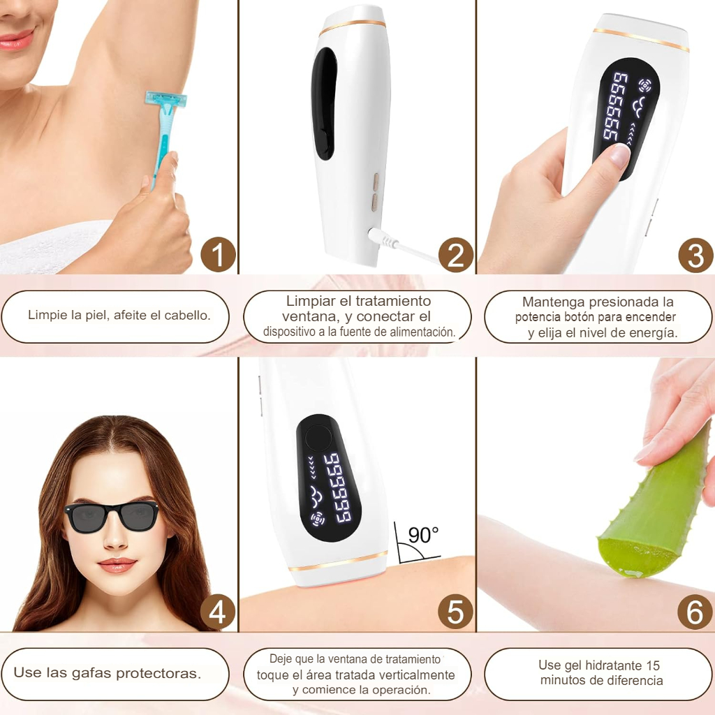 - Kit de dispositivo de depilación: recibirás 1 depilación IPL, ., 1 gafas de sol, 1 afeitado de cabello, 1 manual de instrucciones y una caja de regalo.